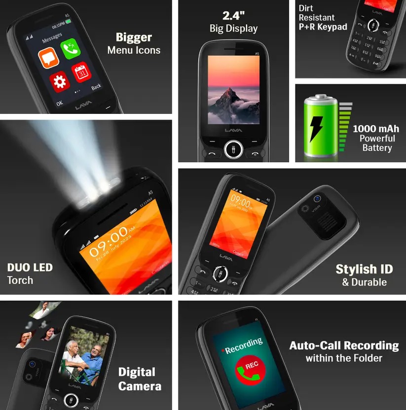 Sale! LAVA A5_23 Keypad Mobile| 1000 mAh Battery|0.3MP Rear Camera|Expandable Upto 32 GB₹1,699.00 Original price was: ₹1,699.00.₹1,080.00Current price is: ₹1,080.00. 32 MB RAM | 32 MB ROM | Expandable Upto 32 GB 6.1 cm (2.4 inch) QVGA Display 0.3MP Rear Camera 1000 mAh Battery LAVA A5_23 Keypad Mobile| 1000 mAh Battery|0.3MP Rear Camera|Expandable Upto 32 GB quantity Add to cart Categories: Keypad Phones, Lava, Mobile Phones Brand: LAVA Description Reviews (0) Description 32 MB RAM | 32 MB ROM | Expandable Upto 32 GB 6.1 cm (2.4 inch) QVGA Display 0.3MP Rear Camera 1000 mAh Battery Reviews There are no reviews yet. Be the first to review “LAVA A5_23 Keypad Mobile| 1000 mAh Battery|0.3MP Rear Camera|Expandable Upto 32 GB” Cancel replyYour email address will not be published. Required fields are marked *Your rating * Rate… Perfect Good Average Not that bad Very poor Your review *Name * Email * Save my name, email, and website in this browser for the next time I comment. Related products Sale! VIVO Y400 Pro 5G ₹21,400.00 – ₹22,900.00Price range: ₹21,400.00 through ₹22,900.00 Select options This product has multiple variants. The options may be chosen on the product page Sale! OPPO A5 Pro5G ₹14,650.00 – ₹16,600.00Price range: ₹14,650.00 through ₹16,600.00 Select options This product has multiple variants. The options may be chosen on the product page Sale! OPPO A5 5G ₹12,650.00 – ₹14,150.00Price range: ₹12,650.00 through ₹14,150.00 Select options This product has multiple variants. The options may be chosen on the product page Sale! Oppo F29 Pro 5G Activated ₹21,499.00 – ₹23,150.00Price range: ₹21,499.00 through ₹23,150.00 Select options This product has multiple variants. The options may be chosen on the product page