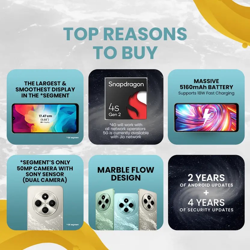 Sale! POCO C75 5G₹7,600.00 – ₹8,350.00Price range: ₹7,600.00 through ₹8,350.00 17.48 cm (6.88 inch) HD+ Display 50MP Rear Camera | 5MP Front Camera 5160 mAh Battery 4s Gen 2 5G Processor COLOUR Choose an optionAqua BlissEnchanted GreenSilver StardustAqua BlissEnchanted GreenSilver Stardust STORAGE & RAM Choose an option4/1284/644/1284/64Clear POCO C75 5G quantity Add to cart SKU: N/A Categories: Mobile Phones, Poco, Smart Phones Brand: Poco Description Additional information Reviews (0) Description 17.48 cm (6.88 inch) HD+ Display 50MP Rear Camera | 5MP Front Camera 5160 mAh Battery 4s Gen 2 5G Processor Additional information COLOUR Aqua Bliss, Enchanted Green, Silver Stardust STORAGE & RAM 4/128, 4/64 Reviews There are no reviews yet. Be the first to review “POCO C75 5G” Cancel replyYour email address will not be published. Required fields are marked *Your rating * Rate… Perfect Good Average Not that bad Very poor Your review *Name * Email * Save my name, email, and website in this browser for the next time I comment. Related products Sale! Redmi Note 14 Pro 5G ₹18,599.00 – ₹20,299.00Price range: ₹18,599.00 through ₹20,299.00 Select options This product has multiple variants. The options may be chosen on the product page Sale! VIVO Y29 5G ₹12,750.00 – ₹13,850.00Price range: ₹12,750.00 through ₹13,850.00 Select options This product has multiple variants. The options may be chosen on the product page Sale! OPPO A5 Pro5G ₹14,650.00 – ₹16,600.00Price range: ₹14,650.00 through ₹16,600.00 Select options This product has multiple variants. The options may be chosen on the product page Sale! OPPO A5 5G ₹12,650.00 – ₹14,150.00Price range: ₹12,650.00 through ₹14,150.00 Select options This product has multiple variants. The options may be chosen on the product page