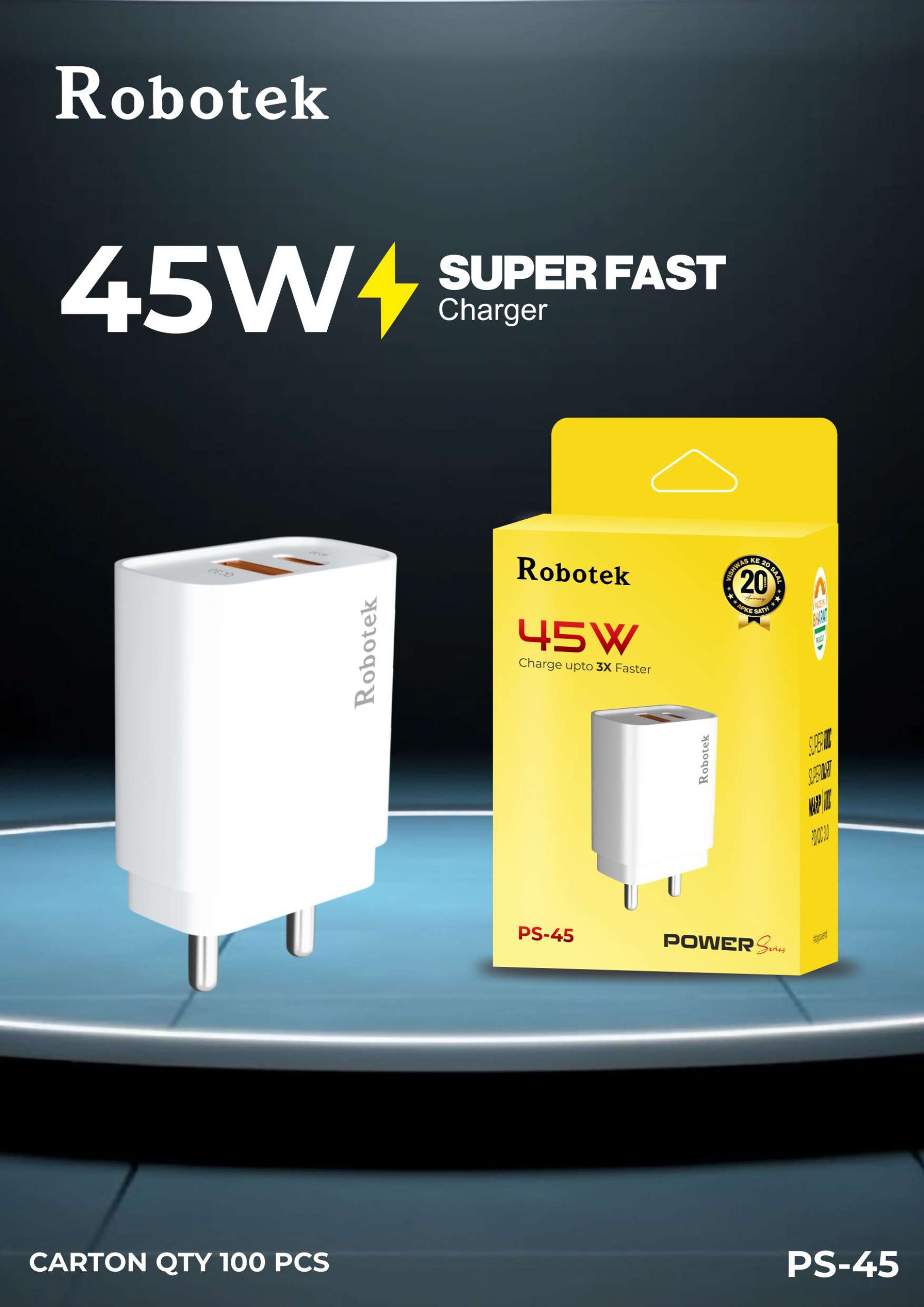 Sale! Robotek PS-45 Charger₹1,299.00 Original price was: ₹1,299.00.₹354.00Current price is: ₹354.00. 3X Faster Charging 45W output to power up your devices up to 3X faster Designed with cutting-edge Quick Charge, WARP, VOOC, FASTCharge, and DART only adapter without cable Robotek PS-45 Charger quantity Add to cart Categories: Chargers, Mobile Accessories, Robotek Brand: Robotek Description Reviews (0) Description 3X Faster Charging 45W output to power up your devices up to 3X faster Designed with cutting-edge Quick Charge, WARP, VOOC, FASTCharge, and DART only adapter without cable Reviews There are no reviews yet. Be the first to review “Robotek PS-45 Charger” Cancel replyYour email address will not be published. Required fields are marked *Your rating * Rate… Perfect Good Average Not that bad Very poor Your review *Name * Email * Save my name, email, and website in this browser for the next time I comment. Related products Sale! Robotek Cable DC-108 V8 ₹249.00 Original price was: ₹249.00.₹52.00Current price is: ₹52.00. Add to cart Sale! Robotek Charger SC222 Typr-C ₹399.00 Original price was: ₹399.00.₹175.00Current price is: ₹175.00. Add to cart Sale! Evm Cable C-015 Type-C ₹299.00 Original price was: ₹299.00.₹38.00Current price is: ₹38.00. Add to cart Sale! Robotek Charger SC224 Type-C ₹549.00 Original price was: ₹549.00.₹200.00Current price is: ₹200.00. Add to cart