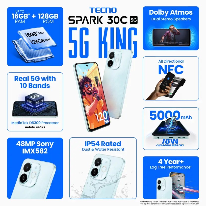 Sale! Tecno Spark 30C 5G₹7,900.00 – ₹8,500.00Price range: ₹7,900.00 through ₹8,500.00 16.94 cm (6.67 inch) Display 48MP Rear Camera | 8MP Front Camera 5000 mAh Battery Dimensity 6300 5G Processor COLOUR Choose an optionAurora CloudAzure SkyMidnight ShadowAurora CloudAzure SkyMidnight Shadow STORAGE & RAM Choose an option4/1284/644/1284/64Clear Tecno Spark 30C 5G quantity Add to cart SKU: N/A Categories: Mobile Phones, Smart Phones, tecno Brand: Tecno Description Additional information Reviews (0) Description 16.94 cm (6.67 inch) Display 48MP Rear Camera | 8MP Front Camera 5000 mAh Battery Dimensity 6300 5G Processor Additional information COLOUR Aurora Cloud, Azure Sky, Midnight Shadow STORAGE & RAM 4/128, 4/64 Reviews There are no reviews yet. Be the first to review “Tecno Spark 30C 5G” Cancel replyYour email address will not be published. Required fields are marked *Your rating * Rate… Perfect Good Average Not that bad Very poor Your review *Name * Email * Save my name, email, and website in this browser for the next time I comment. Related products Sale! OPPO A5 5G ₹12,650.00 – ₹14,150.00Price range: ₹12,650.00 through ₹14,150.00 Select options This product has multiple variants. The options may be chosen on the product page Sale! VIVO X Fold3 Pro 5G ₹169,999.00 Original price was: ₹169,999.00.₹142,000.00Current price is: ₹142,000.00. Select options This product has multiple variants. The options may be chosen on the product page Sale! Samsung A17 5G Activated ₹15,850.00 – ₹19,899.00Price range: ₹15,850.00 through ₹19,899.00 Select options This product has multiple variants. The options may be chosen on the product page Sale! Vivo V60 5G ₹33,000.00 – ₹38,500.00Price range: ₹33,000.00 through ₹38,500.00 Select options This product has multiple variants. The options may be chosen on the product page